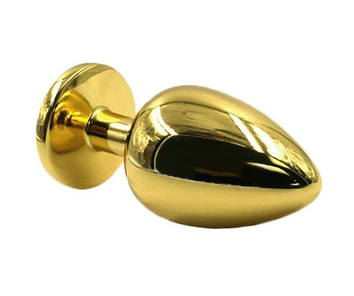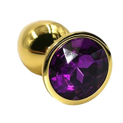 Золотая анальная пробка из алюминия размер S. Страз в основании круглой формы, выполнен из стекла темно-фиолетового цвета. Упакована в вельветовый мешочек для хранения. Вес - 52 гр.