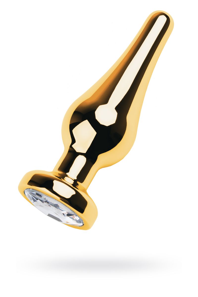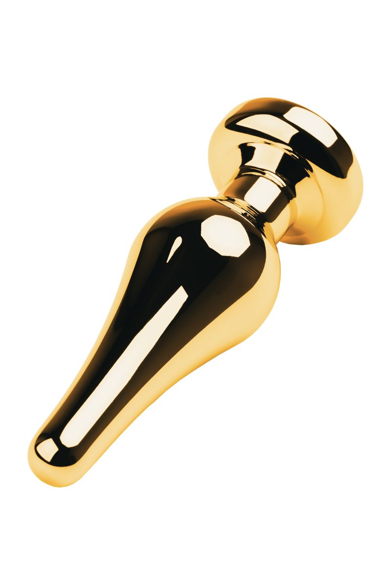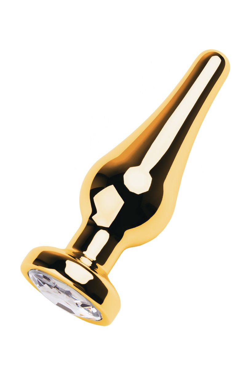 Золотистая каплевидная анальная пробка с прозрачным кристаллом. Рабочая длина - 7,5 см.