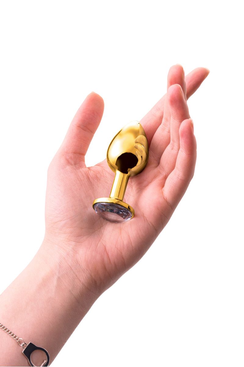 Ласкать попку при помощи анальной втулки можно не только чувственно, но и красиво. При условии, конечно, что в ваших руках окажется эта золотистая вещица с прозрачным кристаллом на основании. Погружение этой металлической секс-игрушки в анус сулит несказанное удовольствие: вон она, сила безупречного скольжения и приятного заполнения! Поставляется в подарочной упаковке.