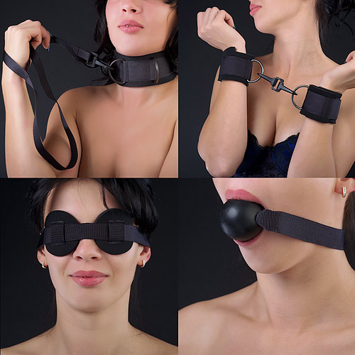 Комплект БДСМ включает в себя интим-маску, кляп с шариком, ошейник и наручники для партнерши. Эти все фетиш-аксессуары из мягкого пенистого неопрена эффектно разнообразят садо-мазо игры.