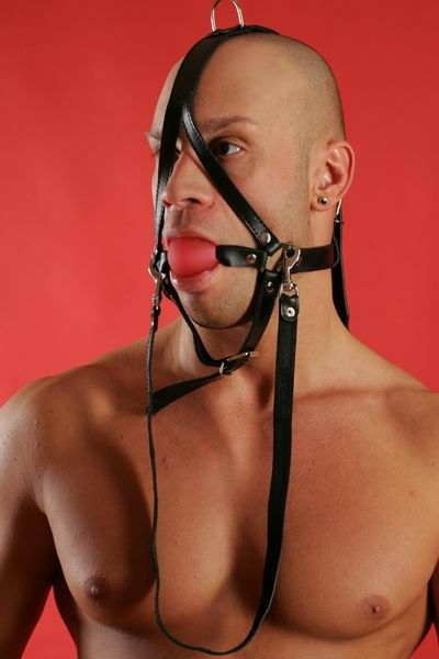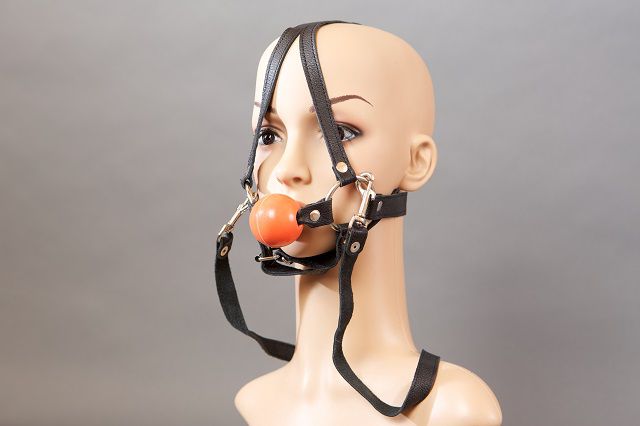 В практике БДСМ для подчинения используются различные девайсы, призванные лишить или ограничить возможности подчиняющегося. Представленная сбруя для лица являет собой систему кожаных ремешков, надежно фиксирующих раба. Чтобы запретить ему говорить, используется классический кляп. Сбруя, размер которой легко регулируется, снабжена поводком.