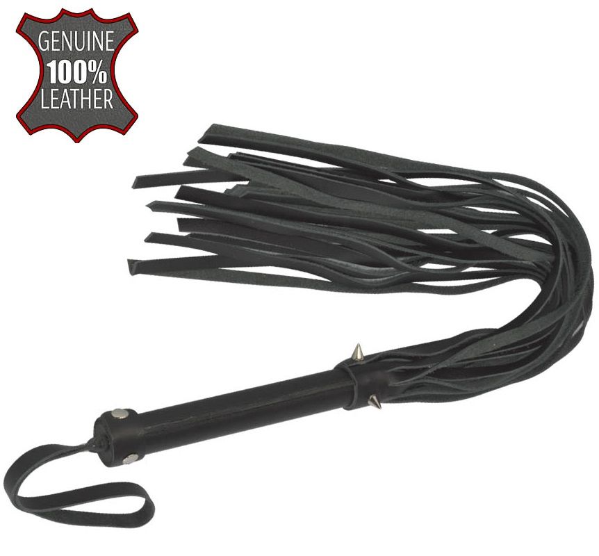 Плеть изготовлена из натуральной кожи и украшена тремя металлическими шипами.
