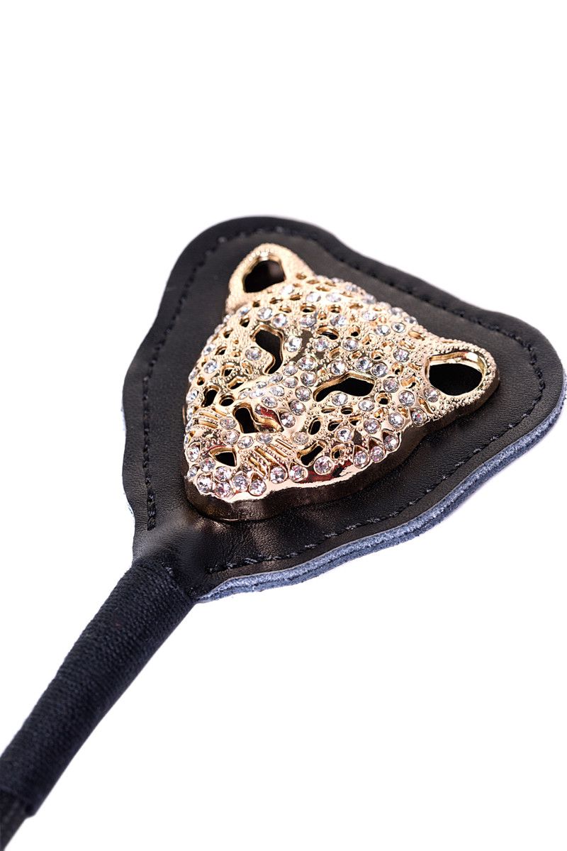 Стек с кожаным шлепком и украшением в виде головы леопарда.