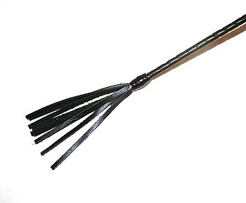 Стек состоит из гибкой основы,овитой натуральной кожей черного цвета,наконечника-кисточки и удобной рукояти с петлей для надевания на руку (темляк). Длина кисточки - 10 см.