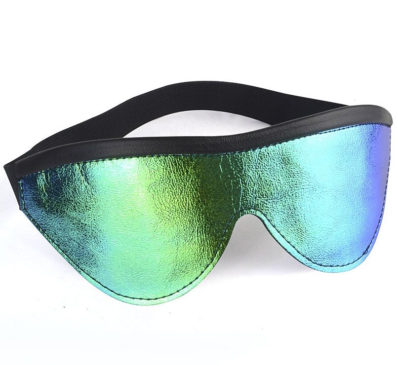 Маска на глаза закрытого типа из натуральной кожи и голографического материала цвета хамелеон с черной контрастной отделкой. Особенностью материала является то, что помимо синего, бирюзового и салатового, он способен принимать множество промежуточных оттенков. Фиксирующая резинка позволяет легко регулировать размер изделия. Внутренняя часть имеет подкладку из велюровой бархатистой кожи.