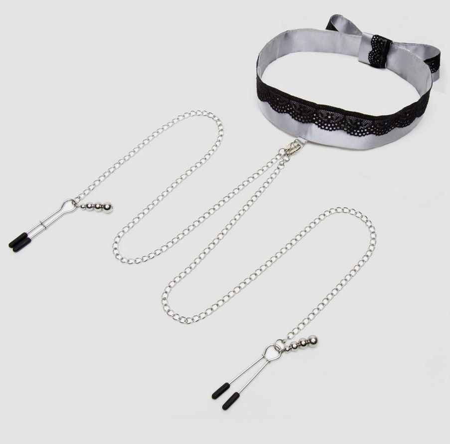 В честь десятилетия эротических открытий и достижений официальная коллекция «Пятьдесят оттенков серого» приглашает вас погрузиться в атмосферу роскоши и удовольствий. Коллекция стильных высококачественных игрушек, аксессуаров для бондажа и предметов первой необходимости, созданная Э.Л. Джеймс, объединяет в себе все, что может вам понадобится, чтобы исследовать свои чувства и впечатления в спальне и за ее пределами. Переливающийся серебристый атласный ошейник с нежной черной кружевной отделкой и регулируемыми зажимами для сосков. Комфортно ощущается даже на самой нежной коже. Зажимы регулируются. Высокий комфорт при длительном ношении