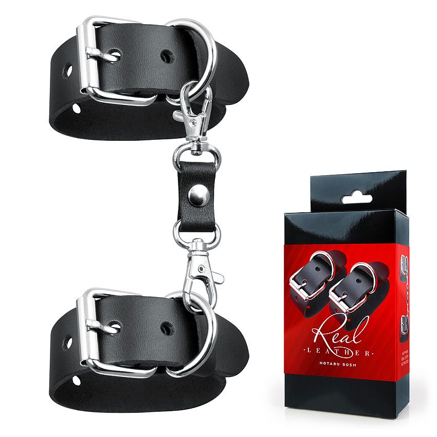 Великолепные наручники для БДСМ-игр скуют движения и подарят ощущение подчинённости одного партнёра другому. В наборе имеется кожаная перемычка с двумя карабинами, надёжно соединяющая наручники между собой. Металлические застёжки регулируют размер интимного аксессуара. Внутренняя поверхность наручников отделана мягкой тканью, что исключает возможность натирания кожи. Изделие изготовлено из качественного материала. Не требует специального ухода.