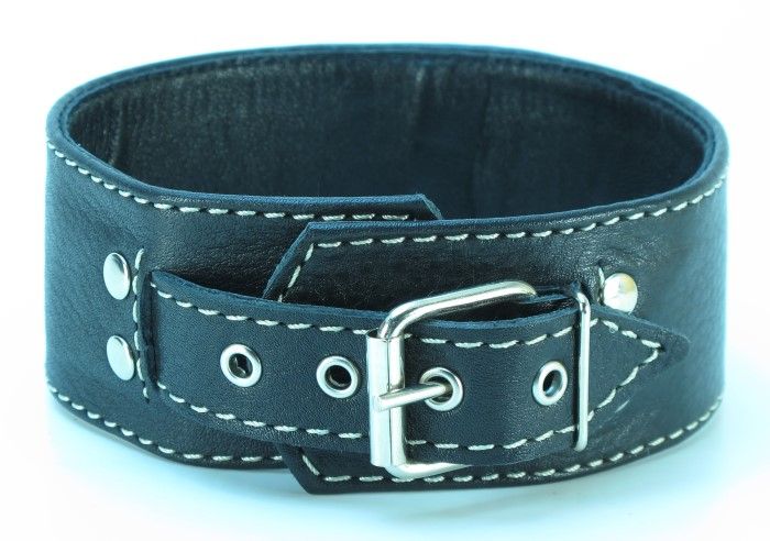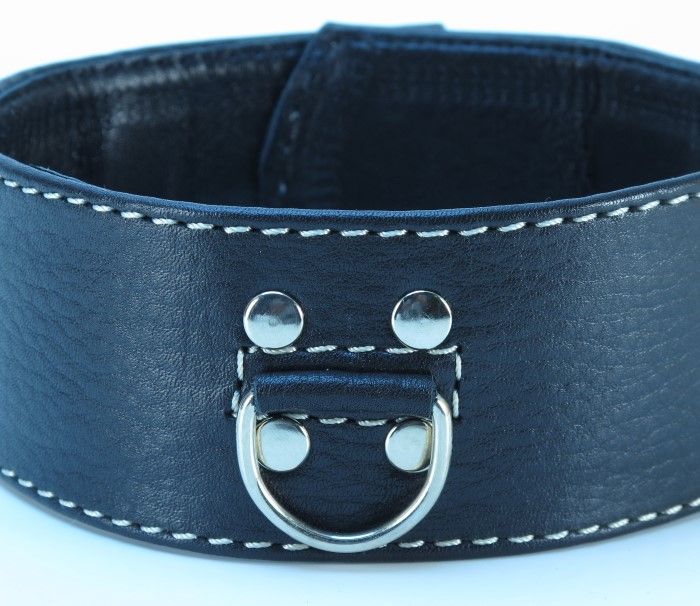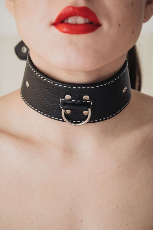 Черный кожаный ошейник с петлёй для поводка. Ширина - 5 см.