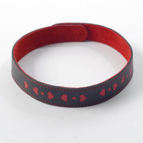 Изготовлен из натуральной кожи с велюровой подкладой. Украшен оригинальной аппликацией в форме сердечек. Размер универсальный. Ширина - 2 см.