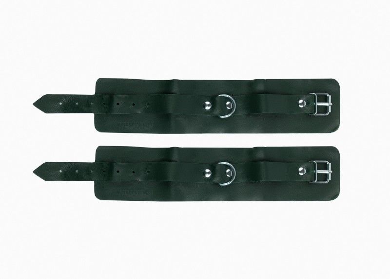 Наножники — один из популярных аксессуаров в БДСМ-практике. Они позволяют ограничить подвижность партнера, сделав его покорным рабом в руках умелого господина, а также помогают зафиксировать тело в позе, удобной для секса. Наножники выполнены из прочной плотной натуральной кожи, надежно фиксируются ремнями с металлическими пряжками. Аксессуары соединяются двумя карабинами между собой. Ремни зафиксированы на наножниках металлическими клепками. Брутальные наножники для ценителей жесткой и сильной фиксации. Обхват наножников - 28 см., ширина - 6 см. Ширина ремешков - 2 см.