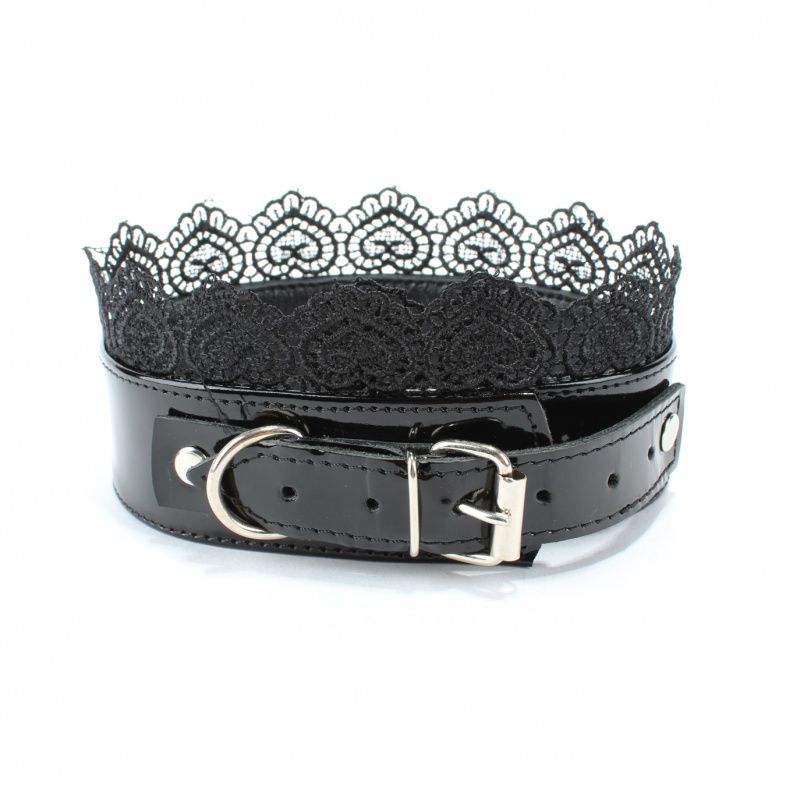 Изящный чёрный ошейник с кружевом.
