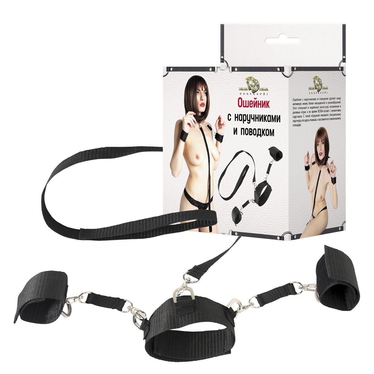 Ошейник с наручниками и поводком сделает вашу интимную жизнь более насыщенной и разнообразной. Этот стильный и надежный аксессуар незаменим в ролевых играх и во время BDSM-сессий с элементами садо-мазо. Ошейник и браслеты наручников имеют мягкую эластичную структуру, после их использования на теле не остается никаких следов. Обхват ошейника и наручников легко регулируется. Ширина ошейника - 4 см. Обхват ошейника - от 31 до 41 см. Ширина наручников - 4 см. Обхват манжет наручников - от 14 до 22 см. Длина поводка - 75 см.