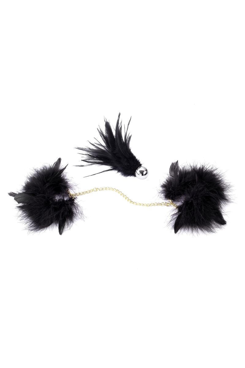 Набор для двоих. Отличный способ сделать подарок любимому человеку и доставить друг другу новые удовольствия! Нежность пера, лёгкие поглаживания до мурашек и пробуждение эрогенных зон — вот что ждёт обладателя представленной щекоталки. В комплекте: наручники, кисточка.