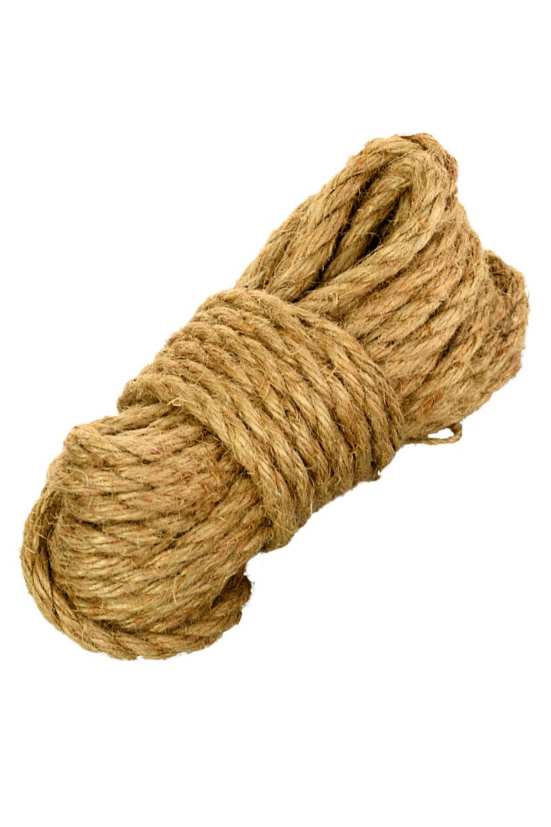 Джут - исторически правильный материал для изготовления бондажных веревок. Такая веревка немного колючая, и это дает дополнительную стимуляцию связываемому. Отрезок 10 метров можно использовать для обвязки тела и в комплекте с другими отрезками.