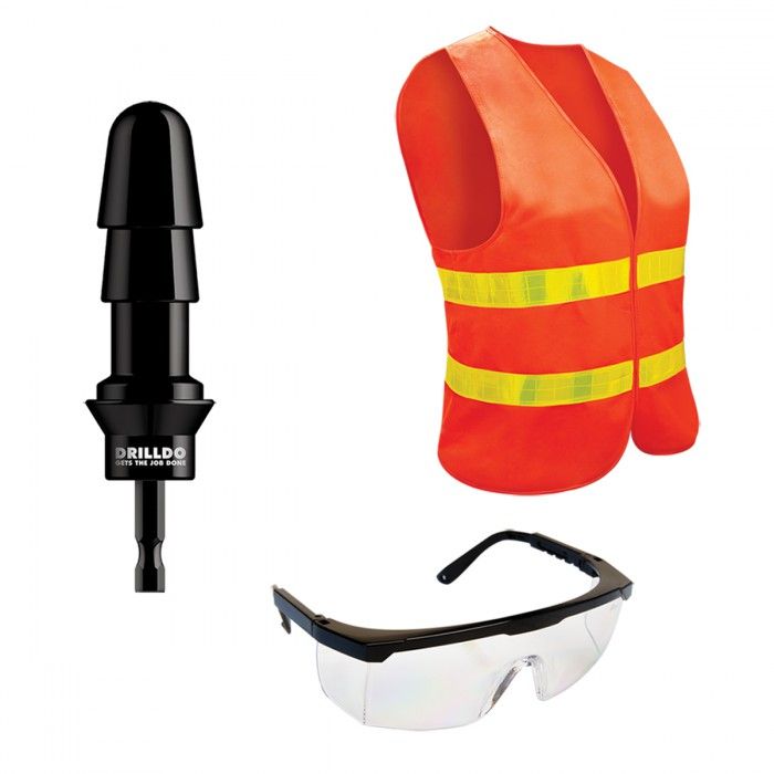 Уже есть дома отличный шуроповерт и любимая насадка Vac-U-Lock? Есть решение, как получить из обычного домашнего инструмента секс-дрель! Стальная битка (адаптер) в форме штыря Vac-U-Lock подходит для любого инструмента, она позволит использовать любые насадки, подходящие для этого вида крепления насадок. Еще в наборе прозрачные очки с регулирующимися по размеру дужками. Оранжевый яркий жилет со светоотражающими полосками, застегивается на липучки, размер универсальный. Устрой проверку на своей секс-площадке!