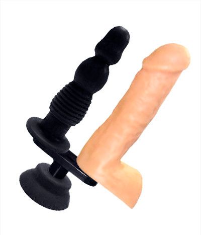 Сменная двойная насадка для секс-машин. Состоит из коннектора, насадки-фаллоса и анальной ёлочки.