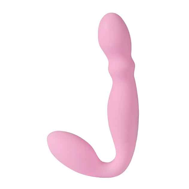 Розовый безремневой вибрострапон. Имеет 11 режимов вибрации. Виброэлементы расположены в обеих частях игрушки.