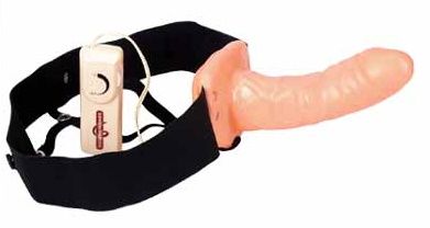Фаллопротез анатомичной формы (мужской). Фаллопротез имеет полость для половых органов, снабжен вибратором с выносным пультом управления, крепится на тело с помощью эластичных строп. Вес-328г. Длина общая - 17 см. Длина рабочей зоны - 15 см. Диаметр - 4,2 cм.,внутренний диаметр 3,5 см.