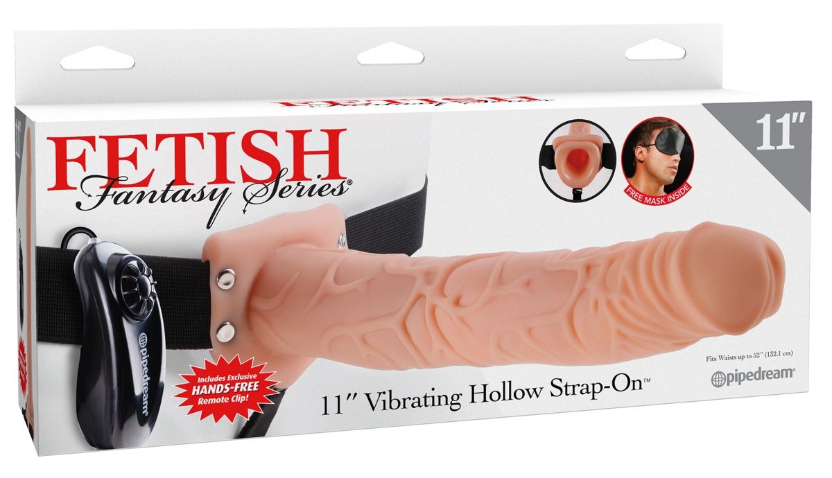 Fetish Fantasy Series 11 Вибрирующий полый страпон с мошонкой. Огромный, удивительно реалистичный набор, созданный для вибрирующего удовольствия без помощи рук, с фаллоимитатором Fetish Fantasys Hollow 11. Эта вещь также может быть использована как простое решение для персон таким проблемами, как эректильная дисфункция или преждевременная эякуляция, нестабильная эрекция. Хотя и достаточно прочный для женского использования, вибромассажер с полостью был специально изготовлен для надевания на половой член. Гладкая внутренняя полость удобно скользит. Фиксированный на эластичных эластичных бретелях, фаллоимитатор надежно держится на месте во время игры. Мощные вибрации будоражат пользователей благодаря многоскоростному виброэлементу, встроенному прямо в наконечник, вибрация активируется вращением диска на пульте дистанционного управления. На пульте имеется удобный зажим, пульт легко надевается на пояс для быстрого доступа. Рабочая длина - 28 см.