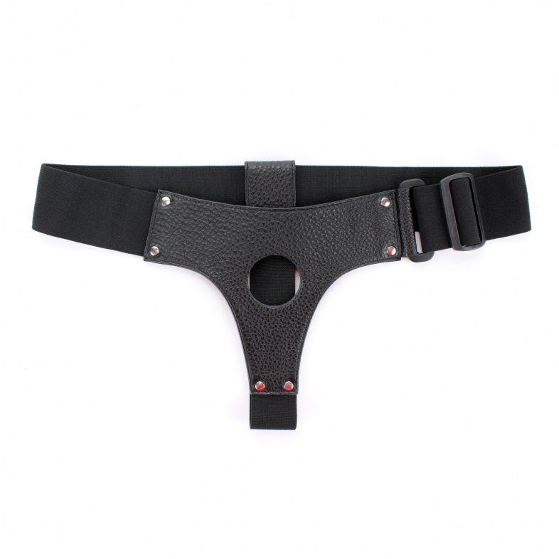 Трусики для страпона, изготовлены из кожи. Крепятся при помощи широких эластичных резинок (размер легко меняется) Диаметр отверстия для страпона - 4 см.