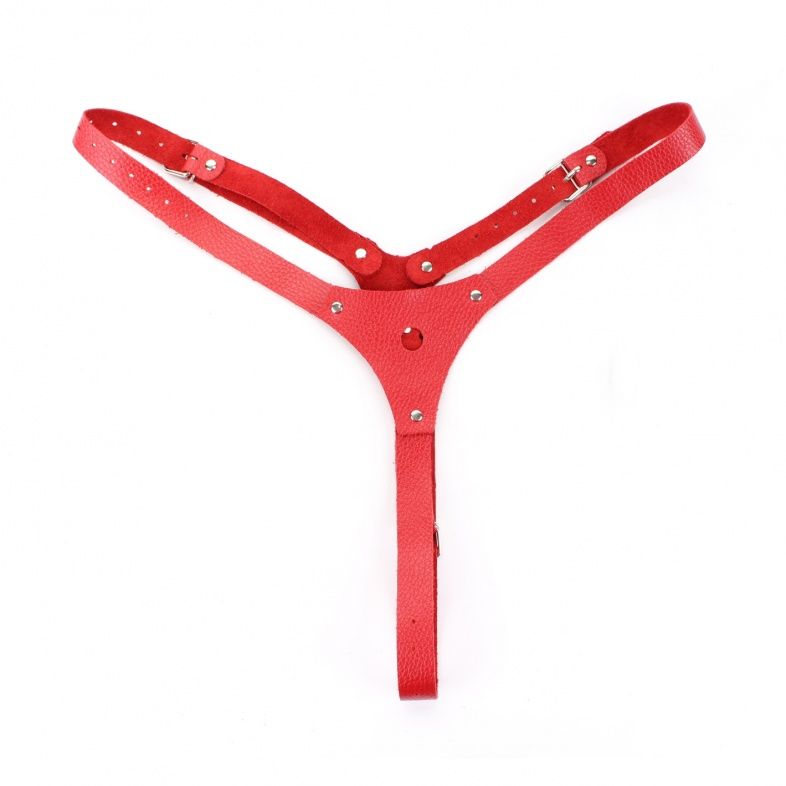 Красные кожаные трусики со штырьком.