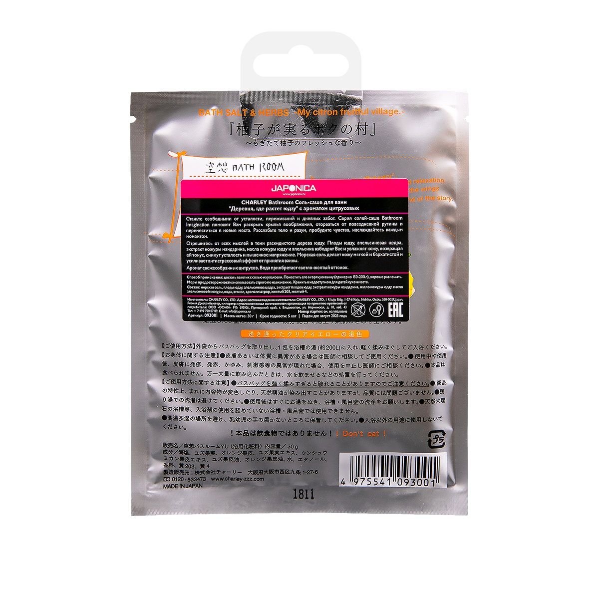 Станьте свободными от усталости, переживаний и дневных забот. Серия солей-саше Bathroom Imagination поможет Вам раскрыть крылья воображения, оторваться от повседневной рутины и переместиться в новые места. Расслабьте тело и разум, пробудите чувства, наслаждайтесь каждым моментом. Отрешитесь от всех мыслей в тени раскидистого дерева юдзу. Плоды юдзу, апельсиновая цедра, экстракт кожуры мандарина, масла кожуры юдзу и апельсина взбодрят Вас и увлажнят кожу, возвращая ей тонус,снимут усталость и мышечное напряжение. Морская соль делает кожу мягкой и бархатистой и усиливает антистрессовый эффект от принятия ванны. Аромат свежесобранных цитрусов. Вода приобретает светло-желтый оттенок.