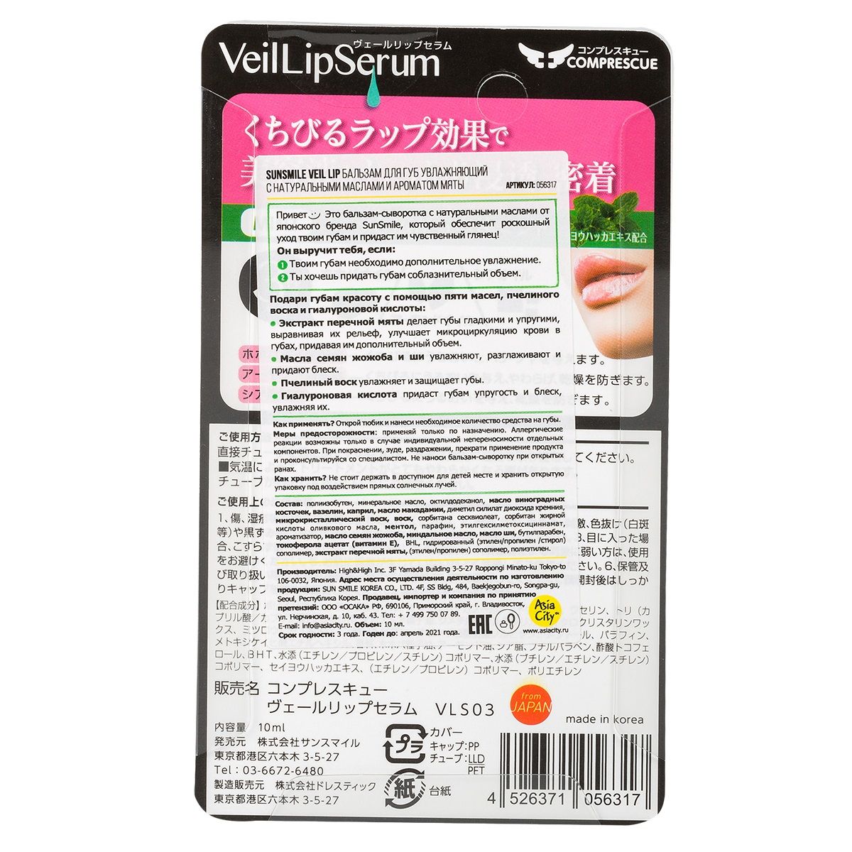 Увлажняющий бальзам-сыворотка с натуральными маслами от японского бренда SunSmile, который обеспечит роскошный уход твоим губам! Подари губам красоту с помощью пяти масел, пчелиного воска и гиалуроновой кислоты:Увлажняет, разглаживает и придает блеск. Придает губам упругость и блеск, увлажняя их. Соблазнительный аромат мяты придает свежести и легкости.