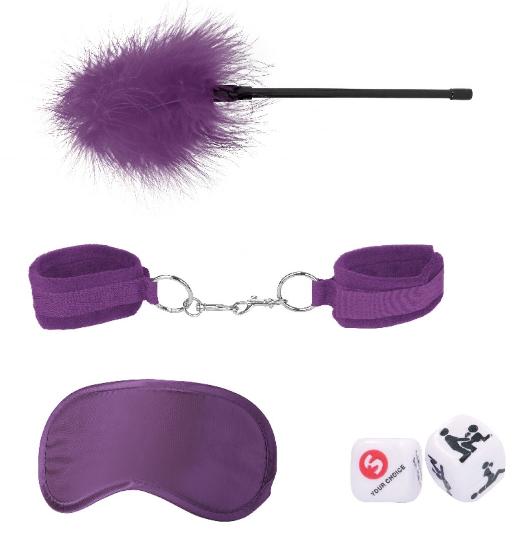 Introductory Bondage Kit №2 – набор, состоящий из 4 предметов для эротических ролевых игр и практик БДСМ. В комплекте: наручники, маска, пуховка, 2 игральных кубика. Длина пуховки - 28 см.
