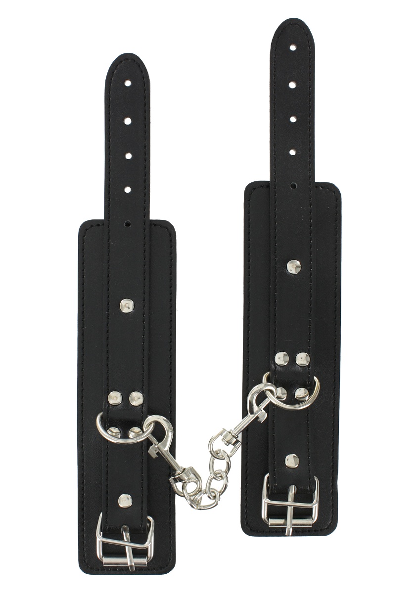 Великолепный набор в подарочной коробке из 7-ми предметов, черного цвета. Включает в себя: маску на глаза (с внутренней стороны бархатистая основа), наручники (между собой скреплены цепочкой с карабинами), зажимы с фиолетовыми колокольчиками, кляп в виде шарика с отверстиями, ошейник с поводком и замочком, плеть (имеет петлю для удобства держания), бандажную веревку. Длина ошейника - 49 см., ширина - 5 см. Длина плети - 44 см.