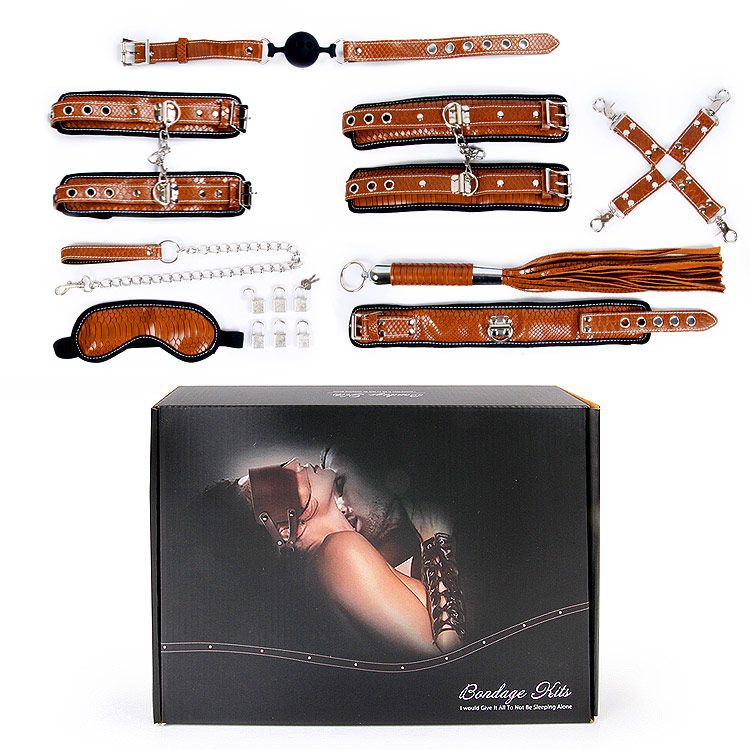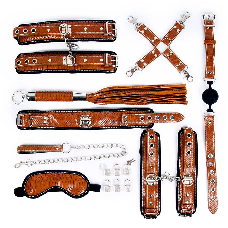 Великолепный набор аксессуаров для любителей БДСМ. В комплект входят маска, ошейник с цепочкой-поводком, кляп, фиксатор, наручники, оковы, плеть, 6 замочков. На внутренней поверхности наручников, оков, ошейника и маски имеется специальная накладка, предотвращающая натирание кожи. Также изделия имеют возможность регулирования размера. Кляп оснащён шариком с отверстиями для дыхания. В комплекте: маска, ошейник с цепочкой-поводком, кляп, фиксатор, наручники, оковы, плеть, 6 замочков. Длина рукояти плети - 17 см., хвостов - 28 см.