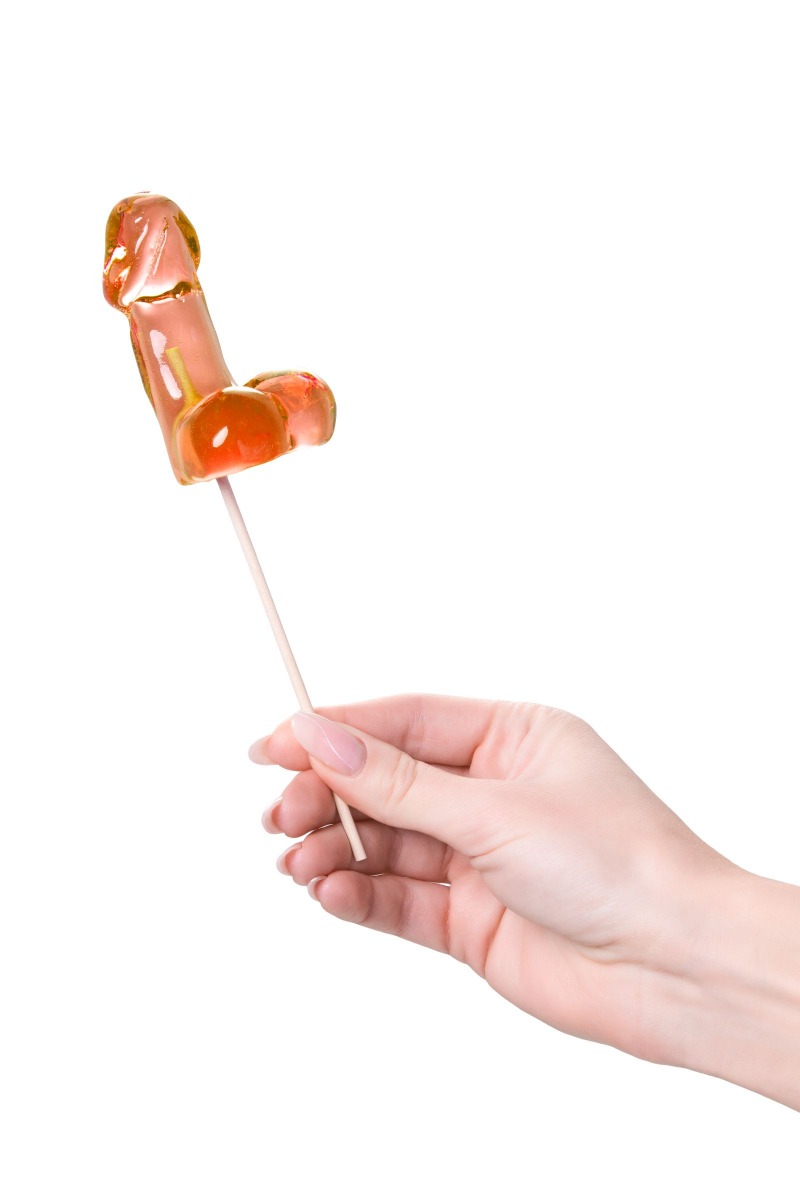 Леденец в форме фаллоса среднего размера от Sosuчki с ароматом – подарит неимоверно задорное настроение окружающим! Яркий, сочный, почти как настоящий, но только съедобный. Он вызывают бурю эмоций и увеличивает уровень эндорфинов не только манящим вкусом, но и своим реалистичным видом. Леденец изготовлен полностью вручную, без применения сахара. В составе только безопасные ингредиенты, разрешенные даже диабетикам. Не приторный, в меру сладкий вкус влюбляет каждого, кто познакомится с этим леденцом. Каждый леденец упакован в индивидуальную пленку с изящной лентой. Такая пикантная сладость на бамбуковой палочке - идеальный вариант в качестве озорного презента к любому празднику, тематической вечеринке или фотосессии. Высота леденца - 8 см.