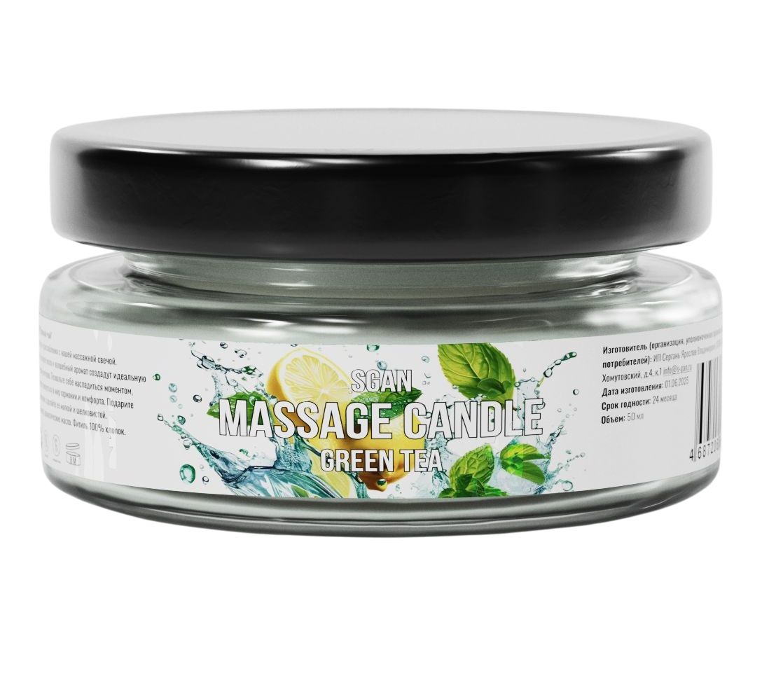 Массажная свеча с ароматом зеленого чая SGAN в стеклянной банке — это натуральное средство для расслабления, ухода за кожей и создания романтической атмосферы. Свеча изготовлена из 100% кокосового воска с добавлением ароматического масла янтарного мусса и хлопкового фитиля, что обеспечивает безопасное и чистое горение. При нагревании свеча превращается в тёплое массажное масло, которое глубоко увлажняет, питает и смягчает кожу, делая её шелковистой и ухоженной. Приятный аромат зеленого чая наполняет комнату уютом и гармонией.