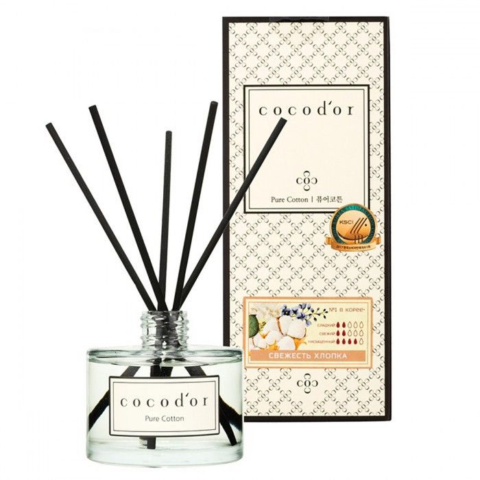 Чистый и ненавязчивый аромат свежего хлопка переносит Вас в светлую спальню со свежим хлопковым бельем, залитую лучами теплого полуденного солнца. Почувствуйте уютную атмосферу и неторопливый ход счастливого воскресного дня. Арома-диффузор Cocodor наполнит дом или офис многогранными парфюмерными композициями, оживляя атмосферу вокруг. Аромат созданы по классическим правилам парфюмерии: сперва вы услышите верхние ноты, следом раскроются сердечные и наконец мягким шлейфом прозвучат базовые ноты. Выбирайте ароматы, подходящие под Ваш характер или настроение. Флакон из прозрачного стекла с станет стильным дополнением интерьера. Черные палочки изготовлены из специальной пористой микрофибры ,аромат будет распространяться равномерно и экономично. Срок действия арома-диффузора Cocodor до трех месяцев. Абсолютно безвреден для Вас и Ваших близких. Не содержат спирт.