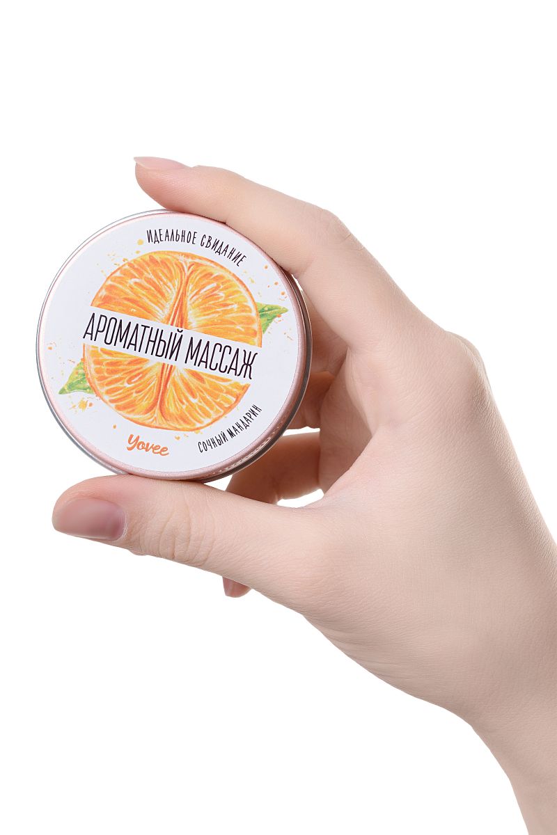 Натуральные масла в составе глубоко питают и увлажняют кожу. Растаявший воск превращается в масло для массажа. Свеча станет идеальным аксессуаром для романтического свидания. Идея для свидания: В выходной день предложите своей половинке взбодриться цитрусовыми соками и бодрящим массажем с ароматом мандарина. Предложите партнеру расслабиться в ожидании массажа. Затушите свечу и немного подождите, пока масло остынет. Лейте масло вдоль спины медленно, а затем начните с лёгких массирующих движений. Сделайте массаж своим обнажённым телом — так он станет ещё более интимным и чувственным. Такое свидание останется в памяти надолго! Свеча подарит незабываемые ощущения, после которых вам гарантированы нежные и мягкие прикосновения!