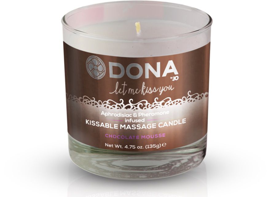 Массажная свеча DONA Kissable Massage Candle Chocolate Mousse с ароматом шоколадного мусса - необходимый атрибут романтического вечера. Нежное пламя и искрящийся оттенок создают эротический полумрак. Манящий аромат феромонов и афродизиаков витает в воздухе, пробуждая обоюдную неудержимую страсть. Всё помещение наполняется теплым опьяняющим ароматом желания. Подождите немного, пока растопится соевое масло, погасите пламя любви и на расстоянии от нежного тела капните каплю волшебного тепла, и начинайте массаж. Массажные движения должны быть чувственными: поглаживания, растирания, лёгкие похлопывания и, конечно же, страстные поцелуи.