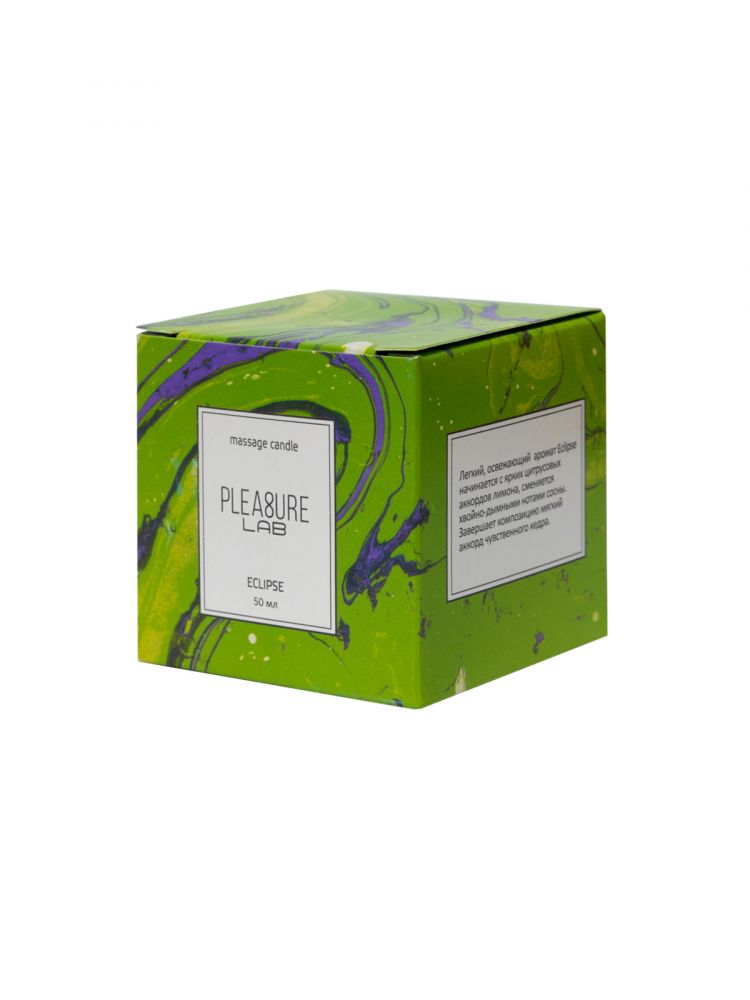 Массажная свеча Pleasure Lab - прекрасный проводник от легких заигрываний до страстного секса. За счет приятного аромата свеча дарит ароматерапевтический эффект, позволяет расслабиться и создать интимную атмосферу. Свеча Eclipse обладаем ярким ароматом с хвойно-дымными нотами сосны. В состав свечей входят органические компоненты: натуральный соевый воск, натуральные масла: ши, миндальное, кунжутное, виноградных косточек, ароматическая композиция и хлопковый фитиль. Способ применения: зажгите свечу и подождите 5-10 минут, пока расплавятся массажные масла. В это время вы можете наслаждаться её чудесным ароматом. Погасите пламя свечи и дайте ей остыть в течение нескольких секунд. Соевый воск плавится при температуре, близкой к температуре кожи, поэтому им нельзя обжечься. Теперь свеча готова к использованию. Нанесите немного растаявшего масла на руки, тело и можете начинать массаж. Время горения - 5,5 часов.