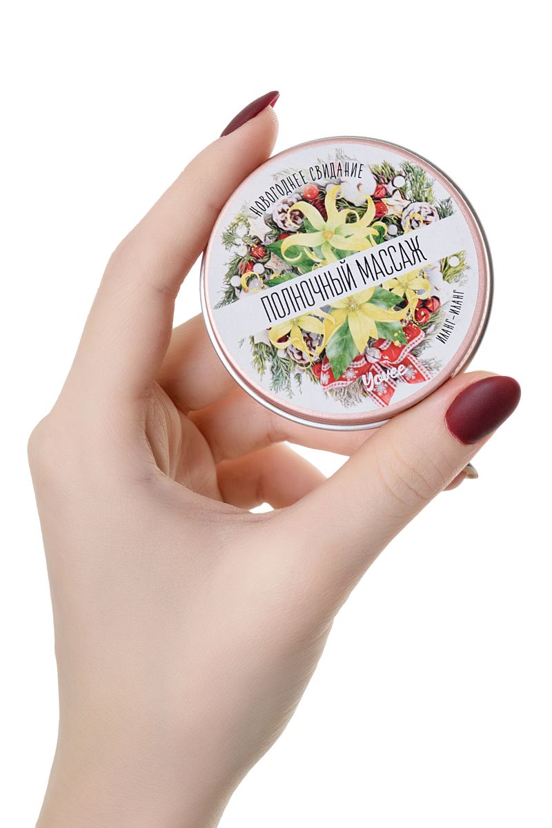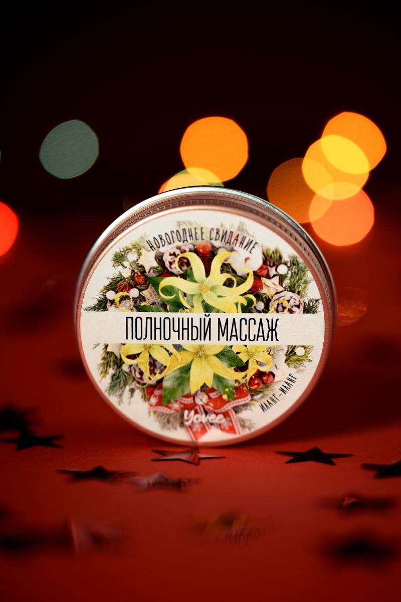 Массажная свеча «Полночный массаж». Натуральные масла в составе глубоко питают и увлажняют кожу. Растаявший воск превращается в масло для массажа. Свеча станет идеальным аксессуаром для романтического свидания. Идея для новогоднего свидания: сделайте партнёру возбуждающий массаж при помощи свечи. Зажгите свечу и ощутите аромат натурального афродизиака Иланг-иланг. Предложите партнёру расслабиться в ожидании массажа. Затушите свечу и немного подождите, пока масло остынет. Лейте масло вдоль спины медленно, а затем начните с лёгких массирующих движений. Сделайте массаж своим обнажённым телом — так он станет ещё более интимным и чувственным. Такое свидание останется в памяти надолго! Свеча подарит незабываемые ощущения, после которых вам гарантированы нежные и мягкие прикосновения! Наслаждайтесь ароматом и бархатной кожей!