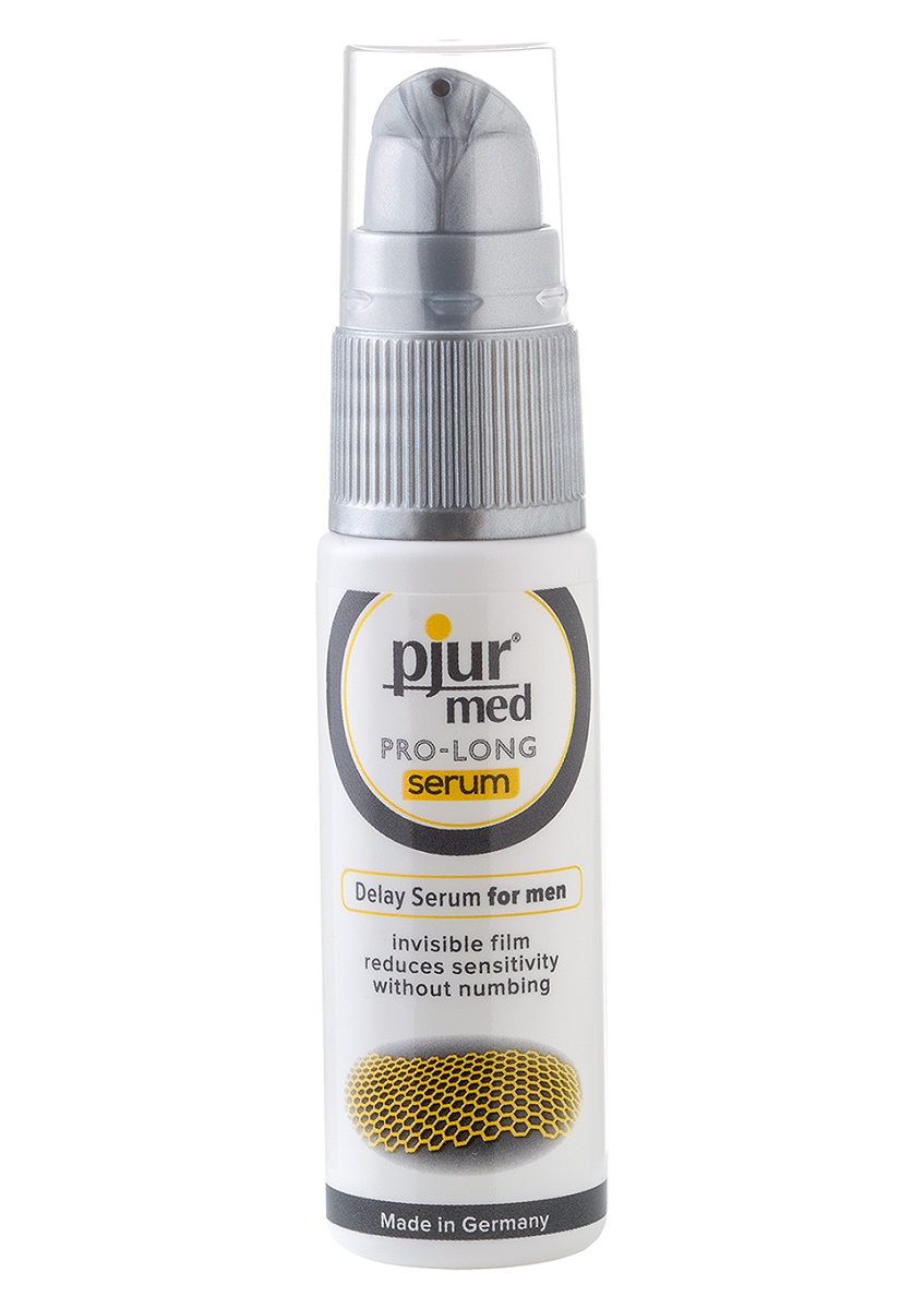 Сыворотка-пролонгатор Pjur Med Pro-long Serum обладает концентрированным составом, который образует на поверхности полового члена тоненькую дышащую пленку, снижающую повышенную чувствительность интимной зоны без ощущения онемения. Формула продукта подходит для применения с презервативами из различных материалов, а также отлично сочетается с разными увлажняющими смазками. Чтоб нанести консистенцию на головку пениса, достаточно пару раз нажать на дозатор и равномерно распределить полученное содержимое. Остатки вещества, которые не впитались в течение 20 секунд, следует промокнуть салфеткой.