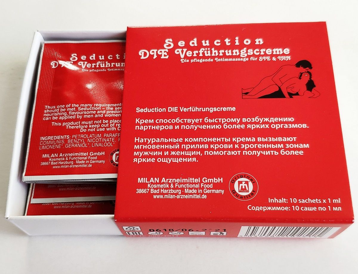 В секс-шопе Orgasmix вы можете купить Набор из 10 пробников возбуждающего интимного крема для мужчин и женщин Seduction артикул 73755 по цене руб. с доставкой в город Москва. Мы осуществляем доставку по всей России. Ближайшая дата отправки этого товара . Заказы принимаются круглосуточно через интернет-магазин.