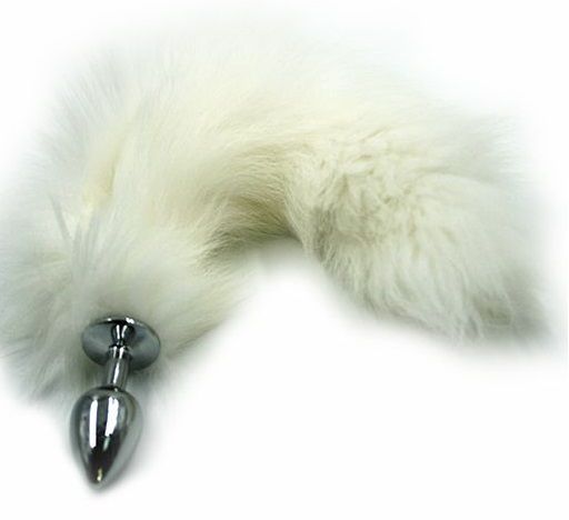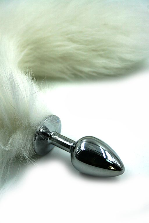 Анальная пробка из алюминия с пушистым хвостом из натурального меха размер S. Упакована для продажи в вельветовый мешочек. Длина пробки - 6,1 см., диаметр - 2,7 см. Вес - 83 гр.