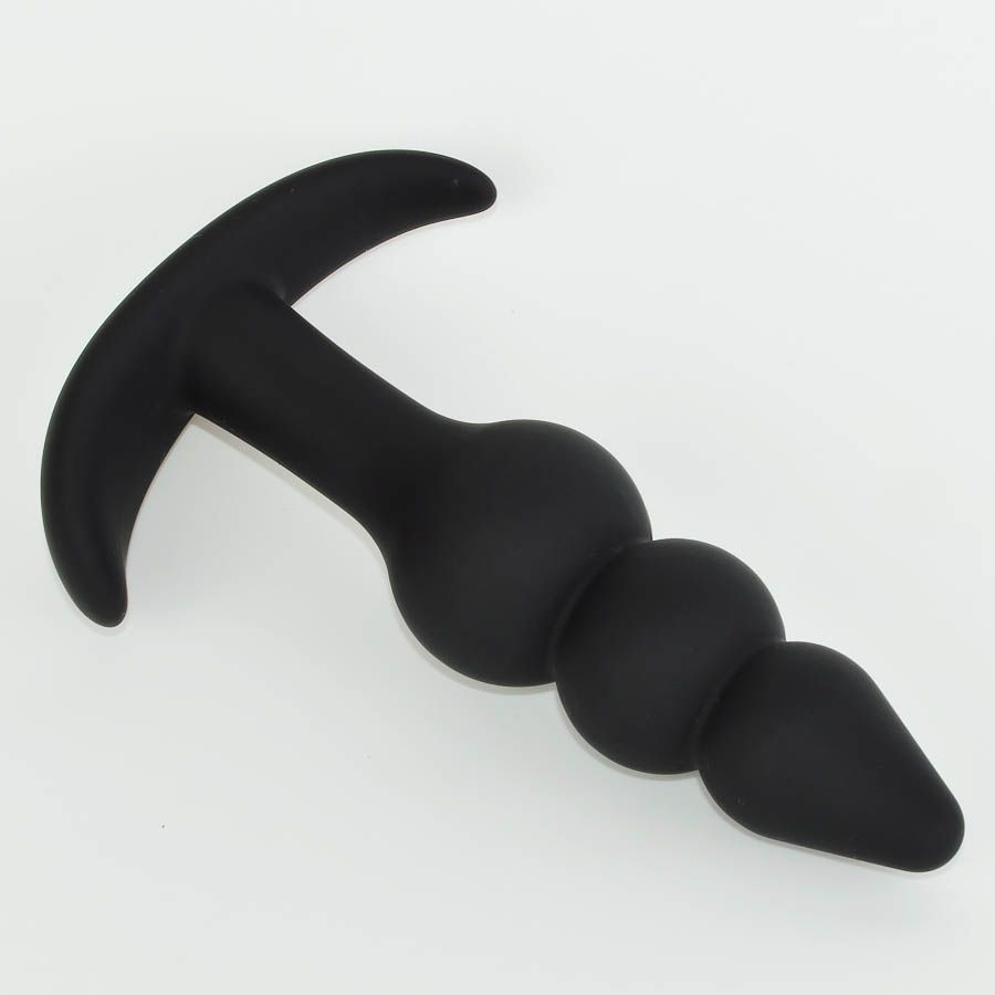 Черная силиконовая анальная пробка. С широким ограничительным основанием. Рабочая длина - 8,5 см.