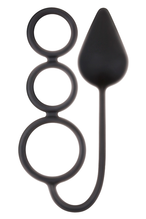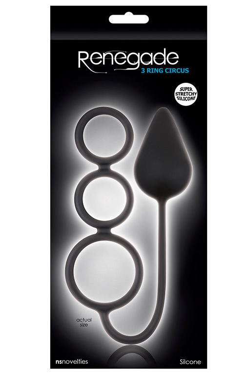Анальная пробка Renegade - 3 Ring Circus Large Black большого размера с тремя эрекционными кольцами - двойное сексуальное удовольствие. Эрекционные кольца нежно сжимают половой член, тем самым удерживая и продлевая эрекцию. Анальная пробка надёжно фиксируется и воздействует на нервные окончания, даря незабываемый, выстреливающий оргазм.Соединены между собой связующей нитью с петелькой.