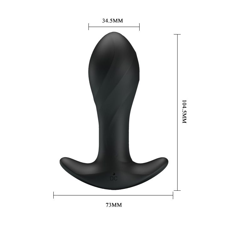 Черная анальная втулка с вибрацией. Широкое ограничительное основание. 12 режимов вибрации. Перезаряжаемая.