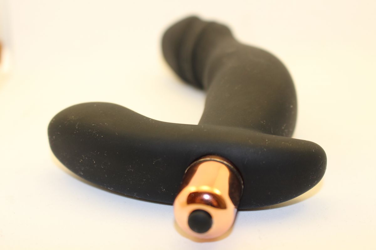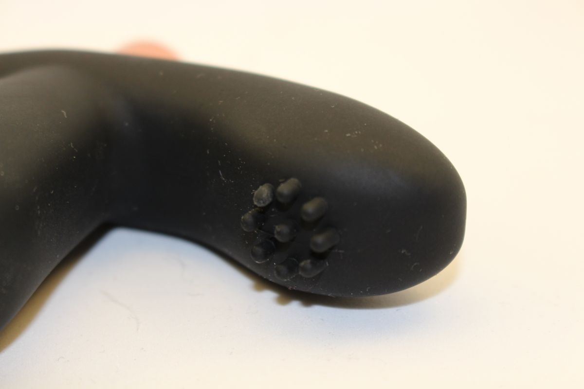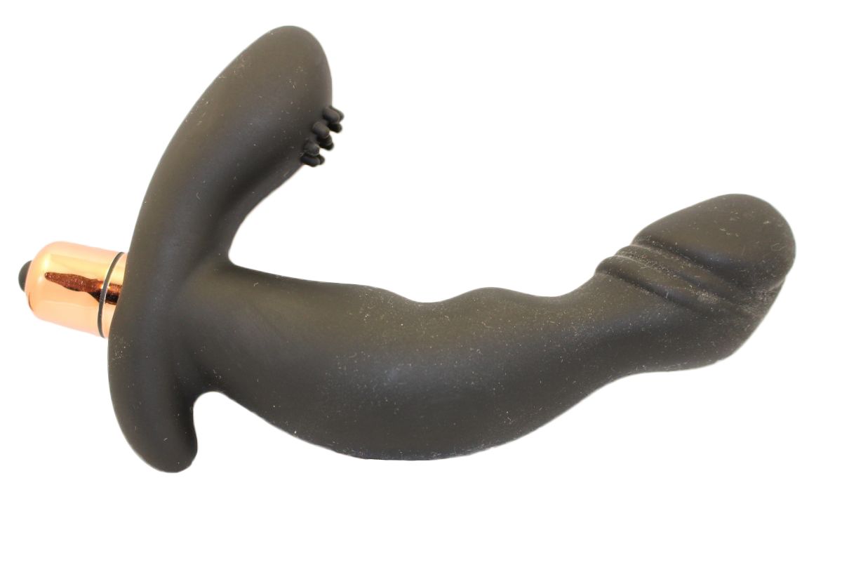 Вибростимулятор черного цвета с загнутым кончиком для наилучшей стимуляции. Водонепроницаемый.