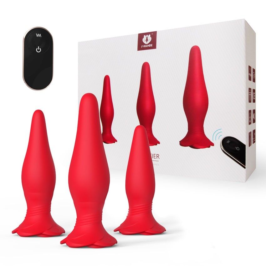 Набор интимных аксессуаров для особых удовольствий. В комплект входят три насадки в виде анальных втулок и виброэлемент. Насадки имеют разный размер, полые внутри. Виброэлемент съёмный и может вставляться в любую из насадок. Секс-игрушки могут использоваться для подготовки к анальному сексу, в качестве игрового элемента во время прелюдии, при интимной близости для получения ещё большего удовольствия. Эргономичная форма насадок способствует комфортному введению и дарит фееричные ощущения. Дистанционный пульт управления позволяет любому из партнёров переключать виброрежимы (9 на выбор) во время занятий любовью. Эротические аксессуары изготовлены из приятного на ощупь материала. Просты в использовании и уходе. В комплекте: вибропуля, 3 полые пробки, пульт ДУ. Длина большой пробки - 14 см, диаметр - 3,8 см. Длина средней пробки - 12,3 см, диаметр - 3,4 см. Длина малой пробки - 10,8 см, диаметр - 3 см. Длина вибропули - 6,9 см, диаметр - 2,6 см.