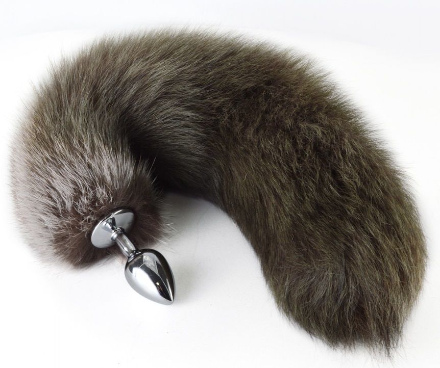 Анальная металлическая пробка с натуральным хвостиком. Длина хвоста - 30-35 см.