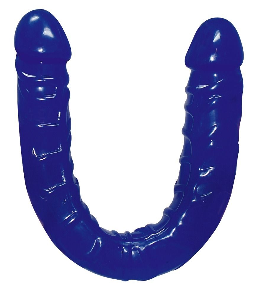 Реалистичный двусторонний фаллоимитатор с венами и головками на обоих концах. Очень гибкий, выполнен из синего геля.