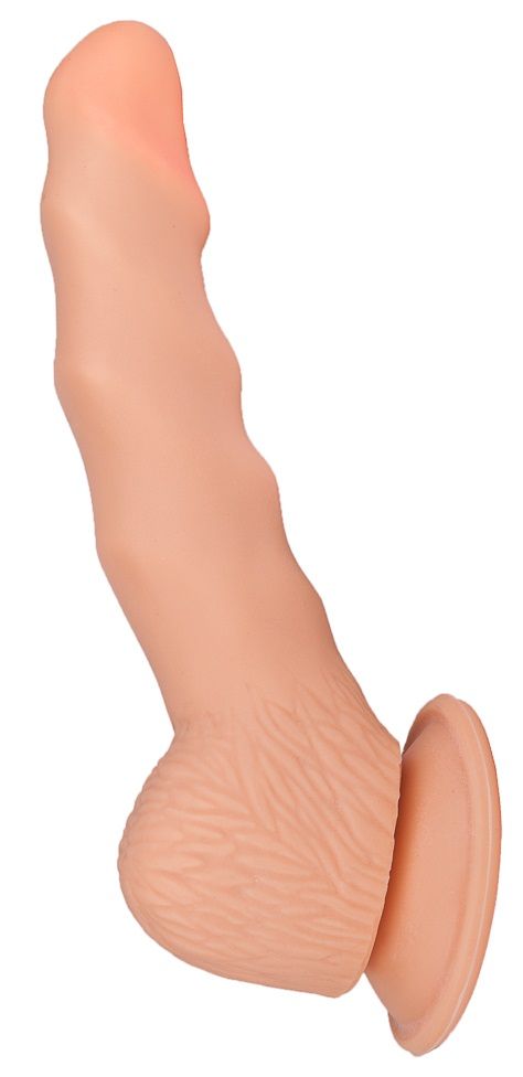 Фаллоимитатор имеет полужесткую структуру и искривлен таким образом, что полностью имитирует физиологическое положение мужского члена. При такой форме и жесткости можно использовать как для анального, так и вагинального секса. Ребристая поверхность придает брутальность и усиливает ощущения во время близости.