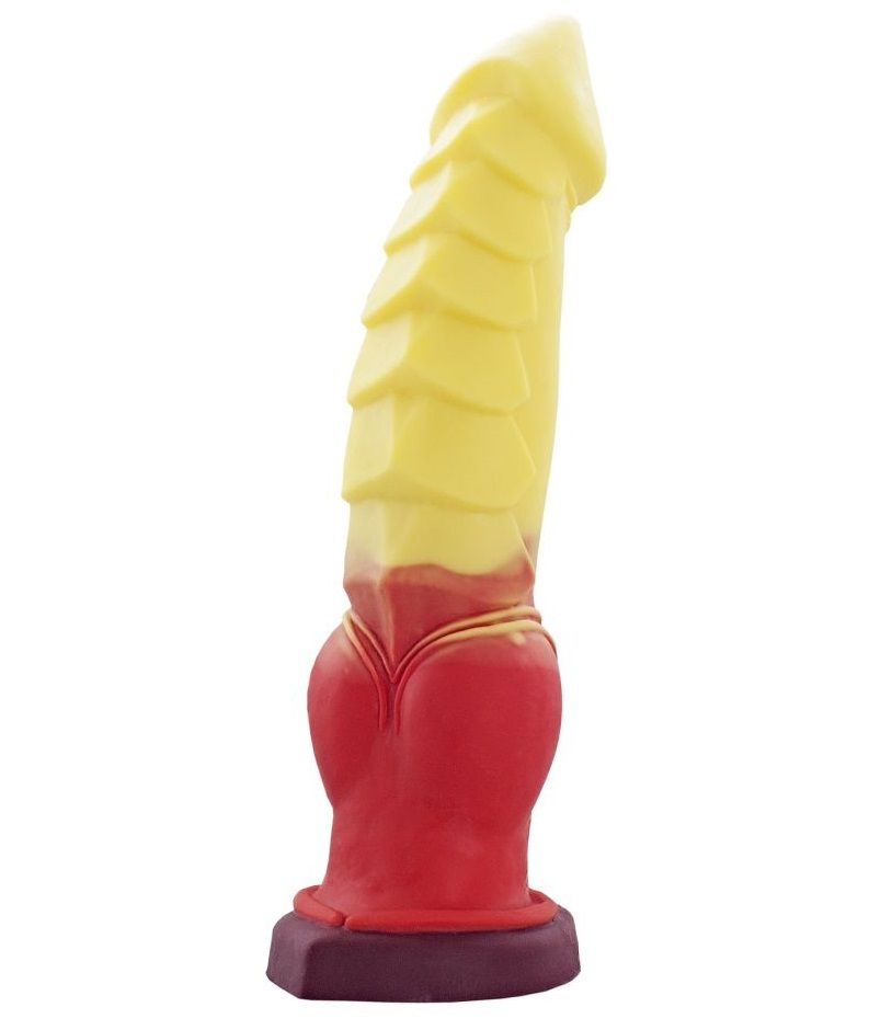 С этим распалённым, в прямом и переносном смысле слова, любовником от Erasexa – первого и пока единственного российского производителя товаров интимного назначения для поклонников зооэротики – вы поймёте, насколько жарким может быть секс. «Огненный дракон» – фаллоимитатор фантазийного дизайна, выполненный из нежнейшего силикона в жёлто-красной расцветке. Податливый ствол с рисунком в виде крупной чешуи венчает чуть заострённая для комфортного проникновения головка. Заполняя вас так, что снаружи будет видна лишь часть мошонки и ограничительное основание, «Огненный дракон» распалит вас до предела: страстью будет полыхать каждая клеточка тела! Рабочая длина - 26,5 см.
