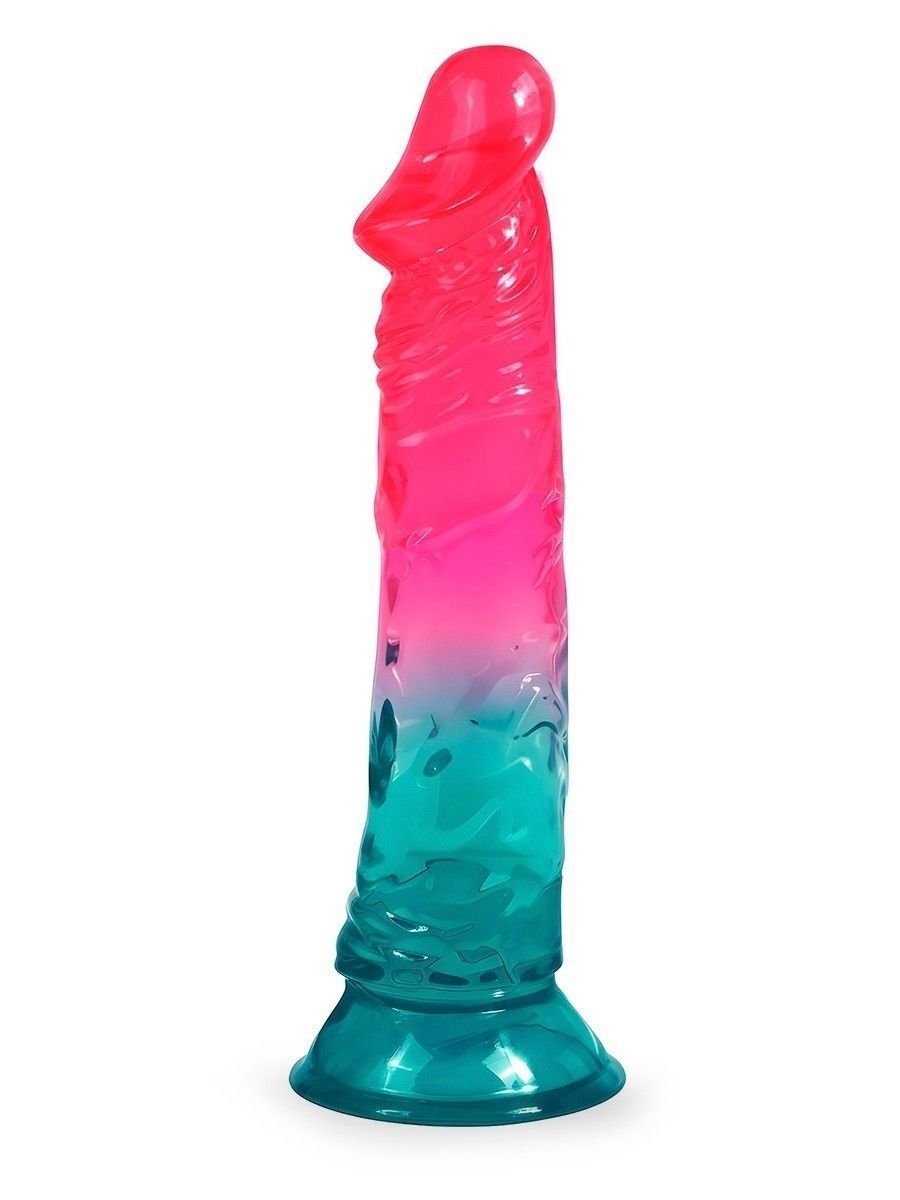 Яркий фаллоимитатор в форме полового члена подарит настоящую эротическую феерию. Хорошо очерченная головка и рельефная поверхность обеспечат дополнительный стимулирующий эффект. Секс-игрушка изготовлена из упругого материала, прекрасно гнётся в разные стороны. Может использоваться для всех видов секса и в разнообразных позах. Присоска надёжно фиксирует интимный аксессуар на ровной поверхности. Рабочая длина - 18 см.